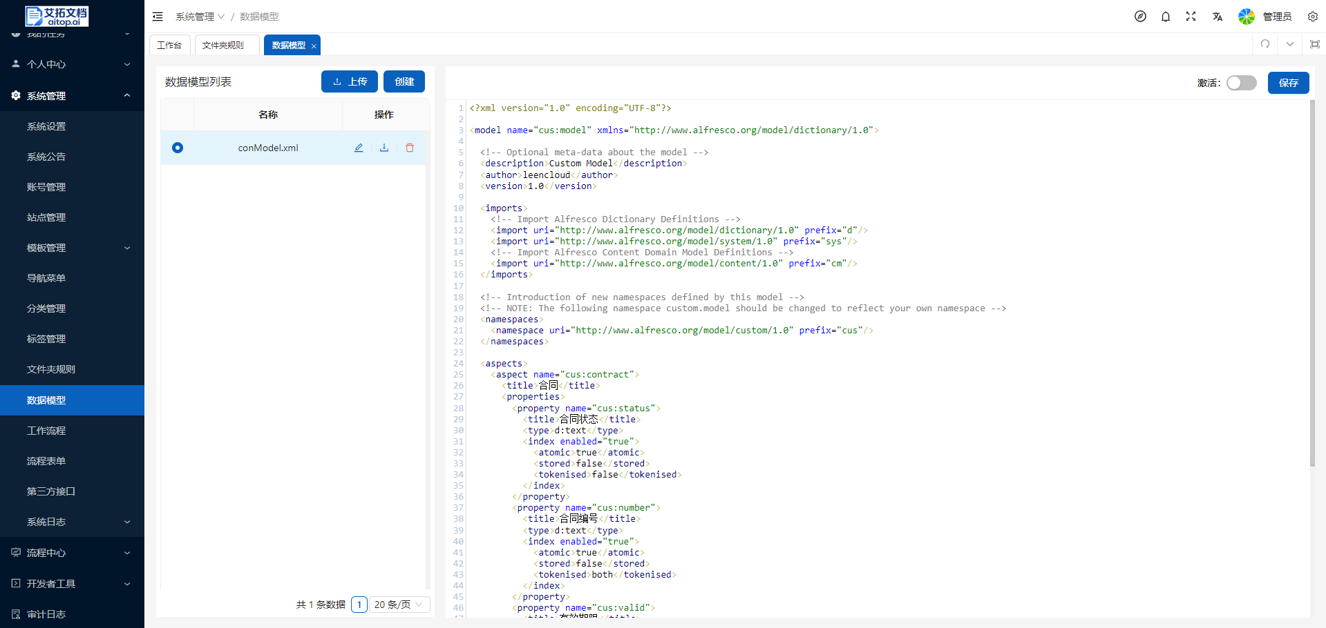 1、点击 系统管理 > 数据模型