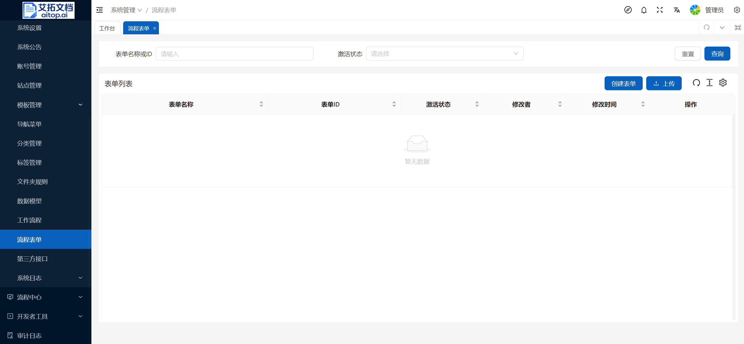 1、点击 系统管理 > 流程表单