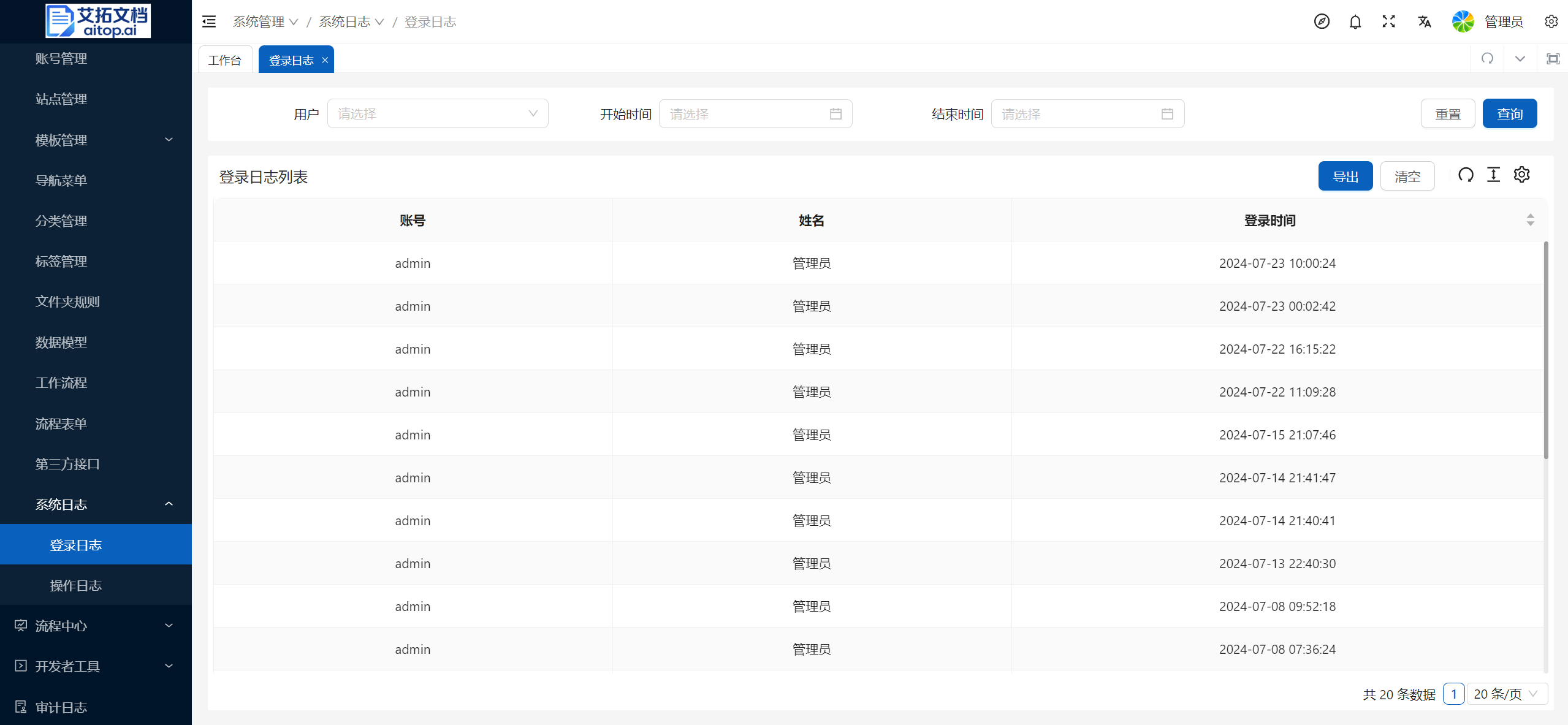 2、在 系统日志 中,可以查看系统的 登录日志 与 操作日志