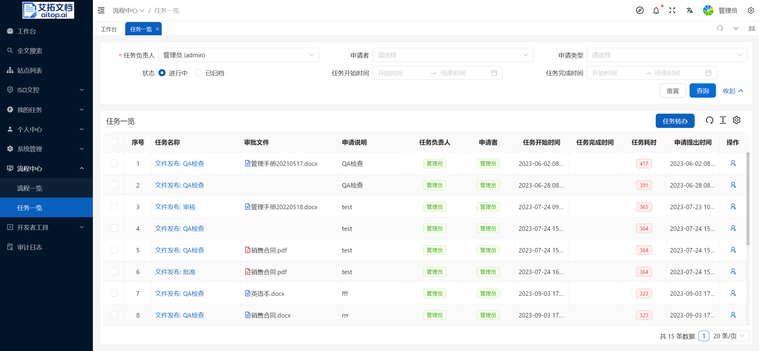 1、点击 流程中心 > 任务一览