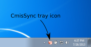 运行CmisSync,在几个欢迎屏幕之后,它将开始作为托盘中的图标运行。
