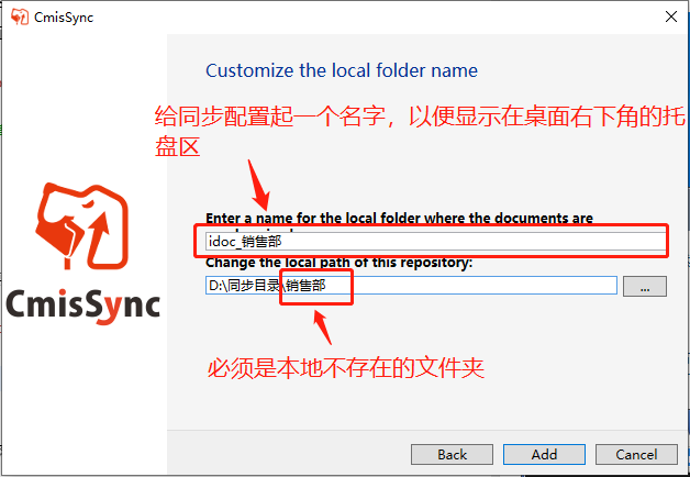 在指定本地同步目录时,必须是本地不存在的文件夹,否则配置可能失败