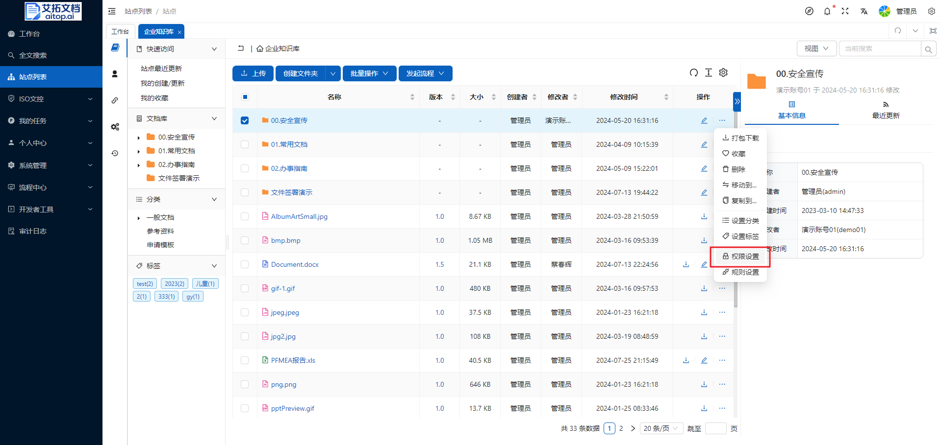 文件夹/文档的管理员可以设置文件夹/文档的权限。